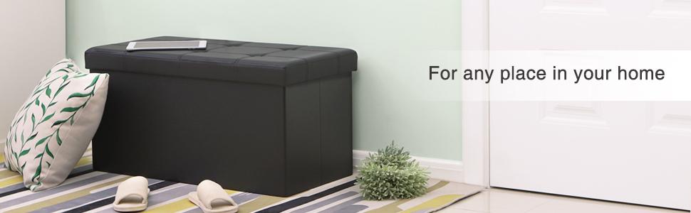 A sokoldalúság számít: ezt az összehajtható puffot helyezze el a hálószobában az ágy végére tárolóként, a kanapé elé a nappaliban lábtartóként vagy a folyosóra, mint cipőpad