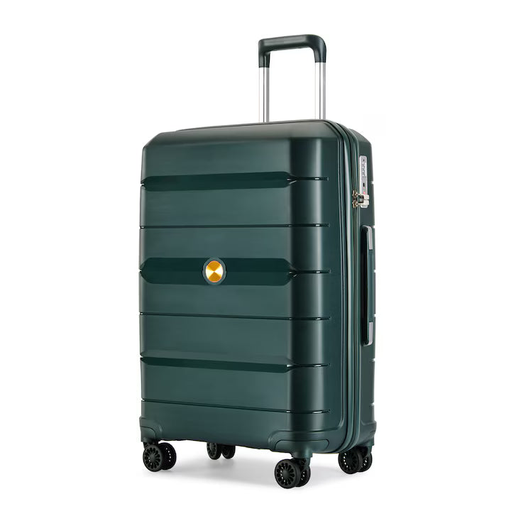 Resena gurulós bőrönd, M-es méret, sötétzöld, 4 kerekes bőrönd, oldalsó és felső kézi fogantyú, teleszkópos húzókar